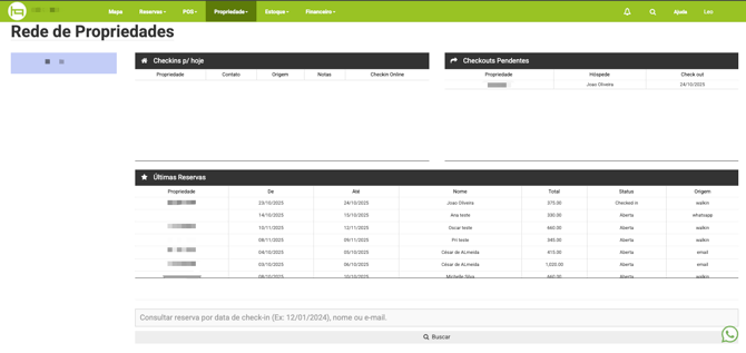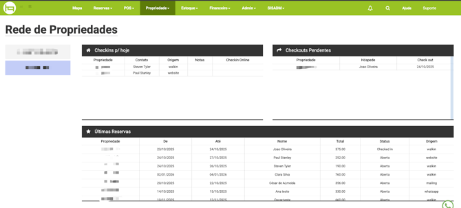Além disso, conta com um campo de pesquisa rápida de reservas da rede, que permite alternar facilmente o acesso entre as propriedades.