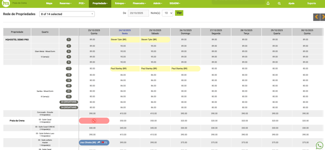 A rede de propriedades conta com uma Mapa de ocupação exclusivo onde é possível visualizar as acomodações e reservas de todas as propriedades da rede