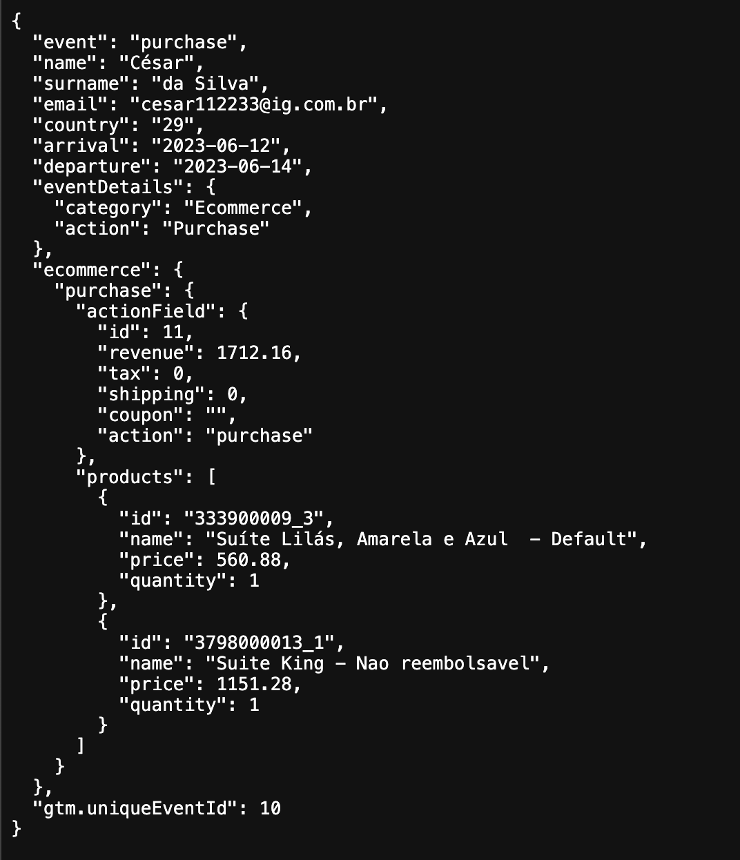 Com o Data Layer é possível rastrear as reservas efetuadas na plataforma, com todas as informações pertinentes para o tipo de data layer (checkout, carrinho de compras, etc).