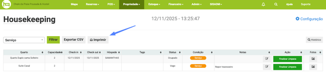 Se precisar, faça a impressão ou exporte a lista das acomodações que serão limpas para melhor controle da equipe.