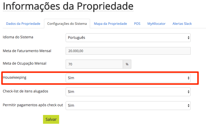 Habilite a ferramenta em Propriedade > Setup > Informações da Propriedade aba Configurações do Sistema selecione a opção "Sim" no campo Housekeeping e salve.