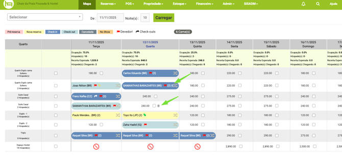 Além disso, no Mapa é possível verificar as acomodações que precisam de limpeza através do ícone de uma lixeira.